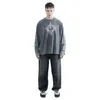 Плотный лонгслив сложного оверсайз кроя из коллаборации с брендом Волчок. Окрашен по технологии garment dye с дополнительной acid wash обработкой. Нанесение выполнено шелкографией.